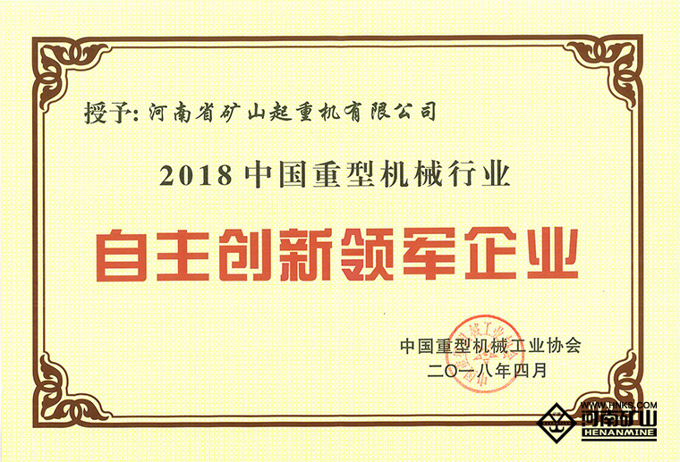 作為本次大會(huì)的重要內(nèi)容,大會(huì)隆重表彰了2018中國(guó)重型機(jī)械行業(yè)“自主創(chuàng)新領(lǐng)軍企業(yè)”及“自主創(chuàng)新先進(jìn)企業(yè)”。河南礦山榮獲“自主創(chuàng)新領(lǐng)軍企業(yè)”榮譽(yù)稱號(hào)。