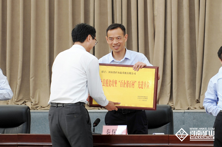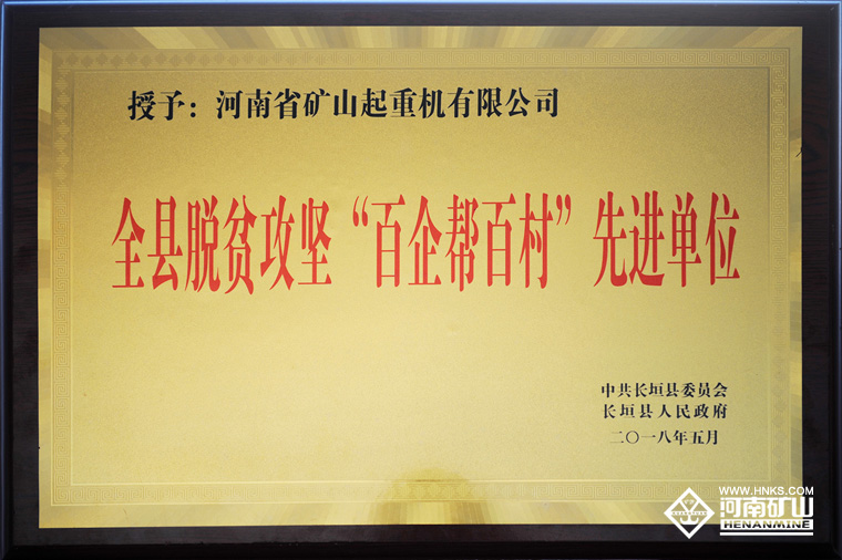 2018年5月9日下午,長(zhǎng)垣縣召開(kāi)“長(zhǎng)垣縣脫貧攻堅(jiān)第七次推進(jìn)會(huì)議”,會(huì)議表彰了在扶貧攻堅(jiān)工作中做出突出貢獻(xiàn)的集體和個(gè)人,河南礦山獲得“全縣脫貧攻堅(jiān)百企幫百村先進(jìn)單位”稱號(hào)。