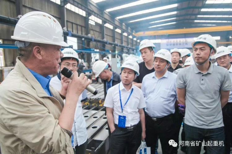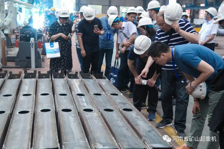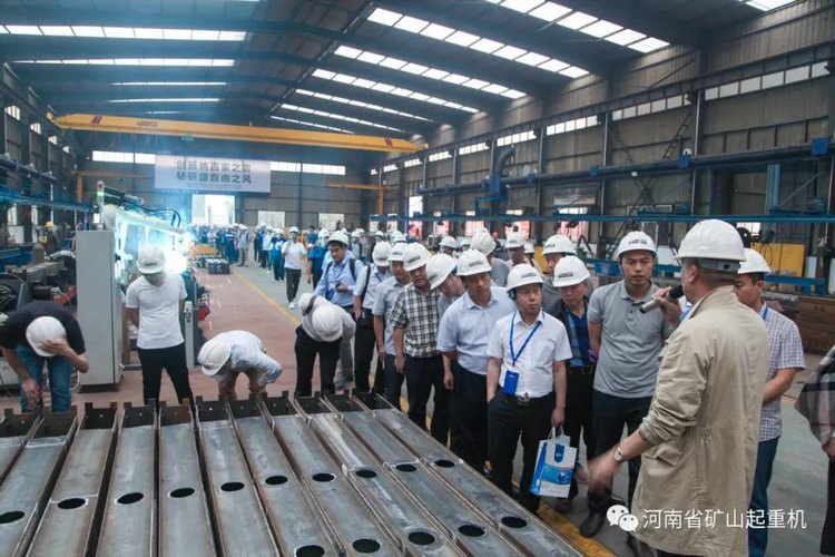 24日下午,河南礦山迎來了多批重要的客人,國家質檢總局特種設備局相關領導,中國重型機械工業(yè)協(xié)會相關領導、重機協(xié)會橋式起重機專業(yè)委員會300家會員單位和全國800家起重裝備整機制造商、配套件制造商及服務商分批蒞臨河南礦山,實地參觀考察河南礦山。公司創(chuàng)始人崔培軍、總經理任海濤分別接待,并熱情的向來訪客人介紹了公司概況、工藝革新及機器人換人計劃等。