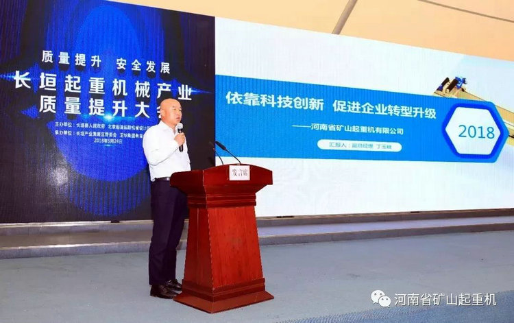 公司質量副總丁玉岐在起重機械產業(yè)質量提升大會上做專題發(fā)言